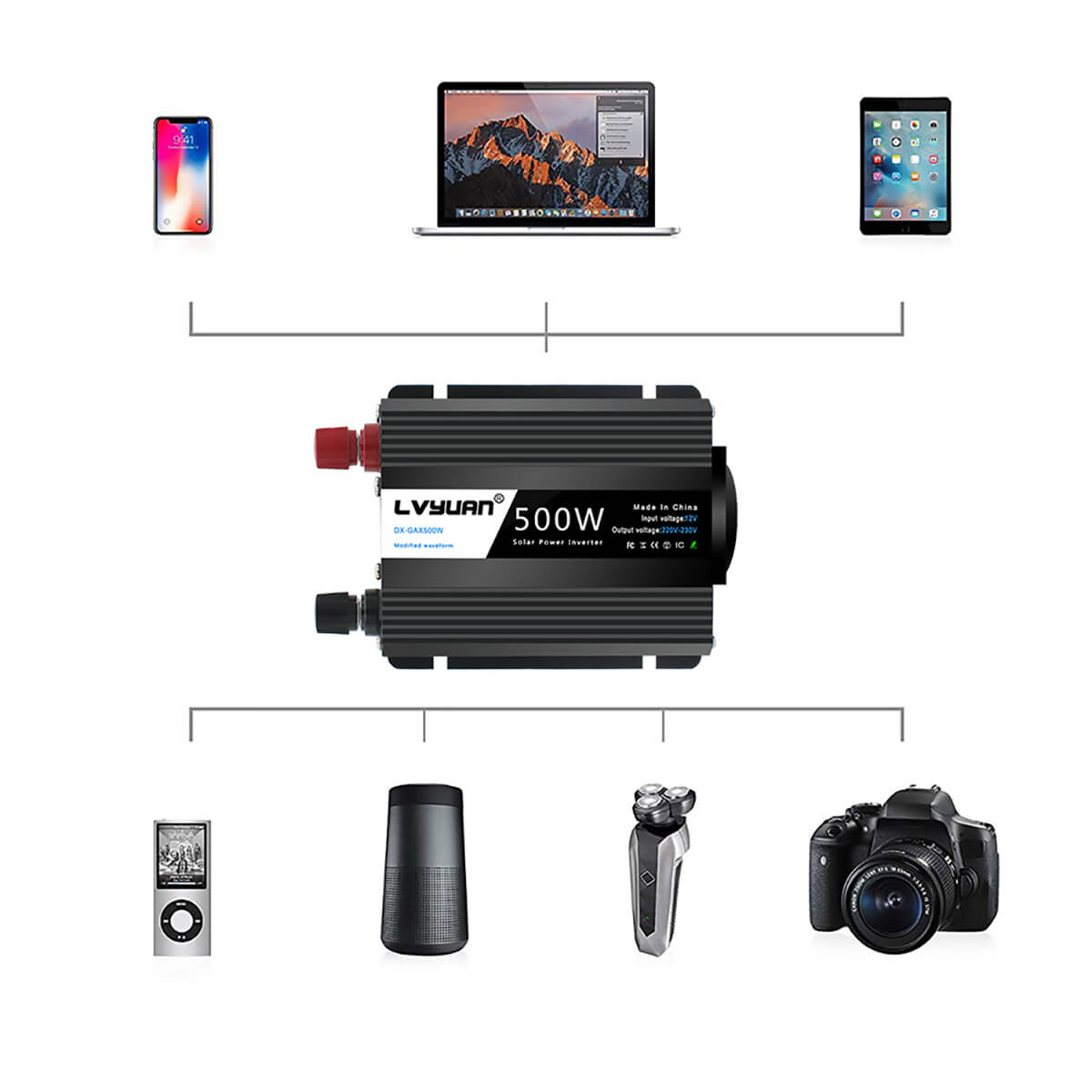 Автомобильный инвертор Lvyuan 500 Вт 12В-220В
